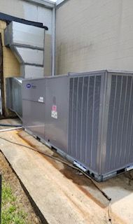 Installing one of the Carrier commercial packaged units at Walk On Bistreaux